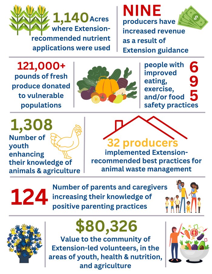 - $80,326 Value to the community of Extension-led volunteers, in the areas of youth, health & nutrition, and agriculture